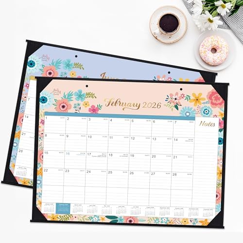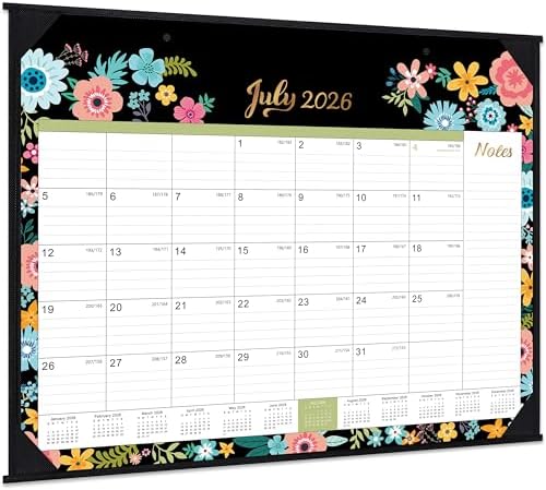 2026 Desk Calendar – Large Desk Calendar 2026, Jan. 2026 – Dec. 2026, 22″ x 17″, 12 Months, Corner Protectors – Black Floral